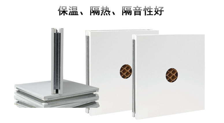 b. 芯材采用紙蜂窩,用熱固化膠在連續成型機內熱加壓復合而成的超輕建筑板材;